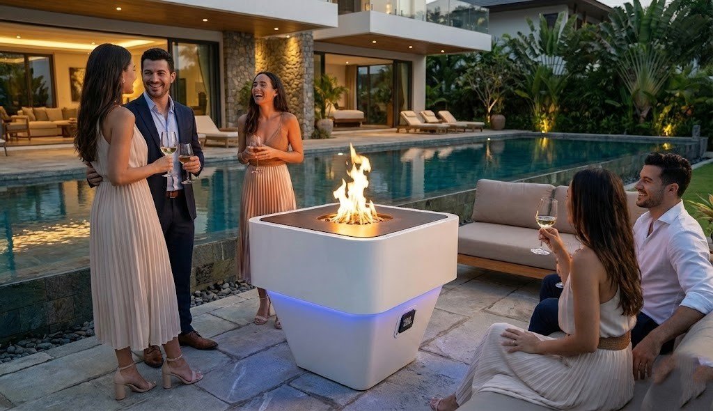 Bahçe ve teraslar için şık bir şömine deneyimi.